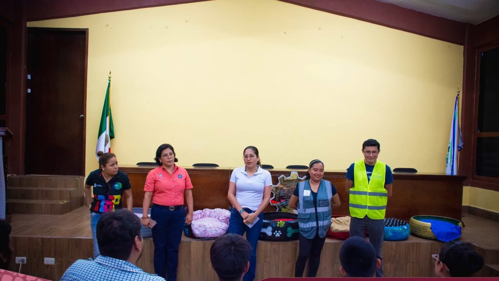 Los estudiantes hicieron entrega de camitas para mascotas elaboradas con llantas recicladas, fomentando la reutilización de materiales y la conciencia ambiental, además de leche en polvo para cachorros y alimento para perros, insumos que beneficiarán a los animalitos rescatados por esta noble asociación civil.