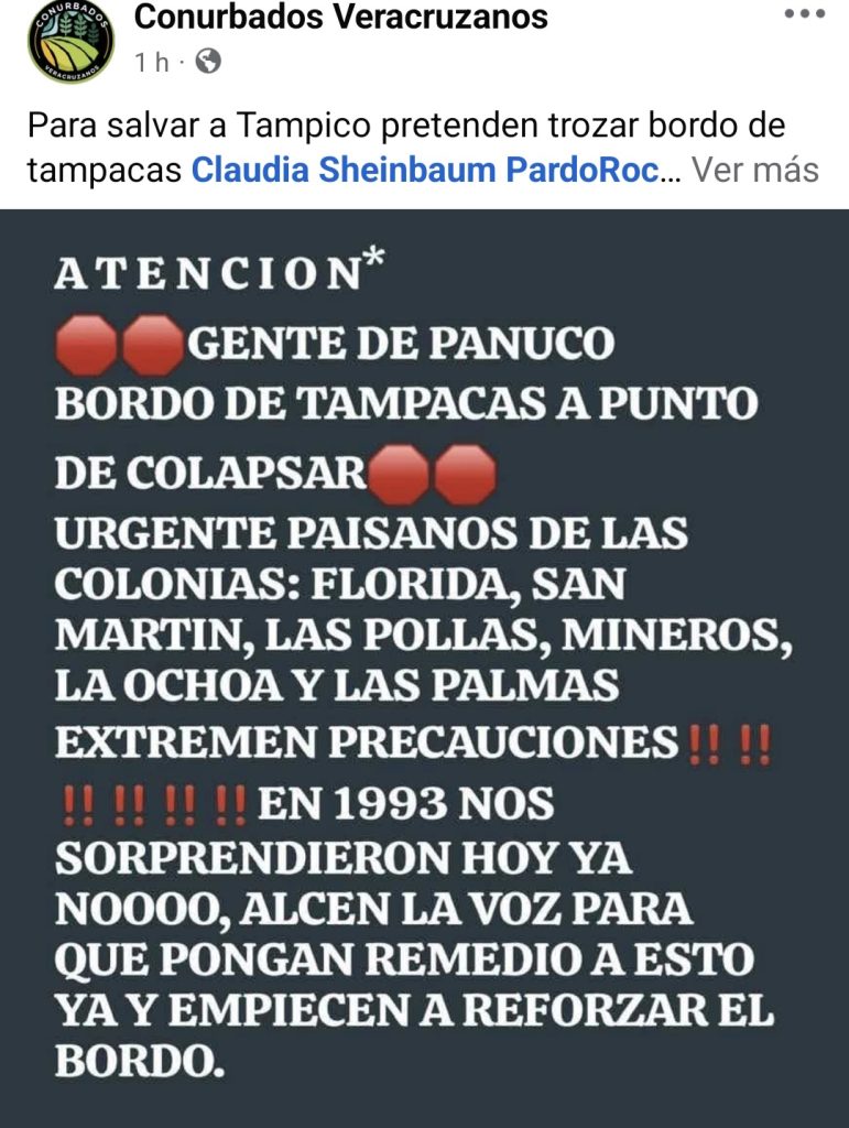 La ruptura del bordo es totalmente falsa, se desconoce si el director estatal este ordenando estas acciones que buscan desestabilizar al pueblo de Pánuco. Sabrá la gobernadora Rocío Nahle de estas acciones.