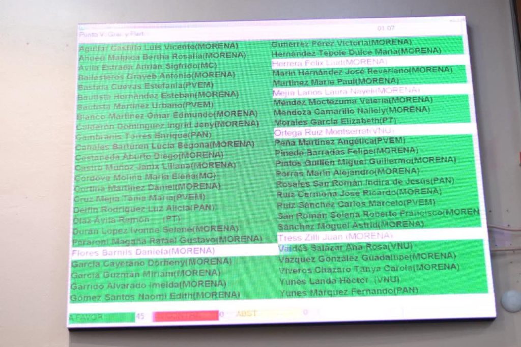 Durante la Decimaséptima sesión ordinaria, diputadas y diputados de la LXVII Legislatura aprobaron, con 45 votos, sin abstenciones o votos en contra, la Ley de Ingresos del Gobierno del Estado para el Ejercicio Fiscal 2026, la cual prevé que los ingresos presupuestarios del sector público estatal asciendan a 177 mil 408 millones 439 mil 386 pesos, en concordancia con los principios constitucionales y legales vigentes.