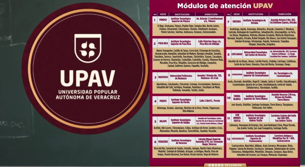La Secretaría de Educación de Veracruz (SEV) anunció este miércoles 4 de febrero la convocatoria de certificación de la plantilla laboral docente y de directivos de la UPAV, la cual estará abierta del jueves 5 al domingo 8 de febrero. «Se te convoca a que asistas a tu sede más cercana para regularizar y certificar tu docencia en la UPAV«, dice el mensaje difundido.